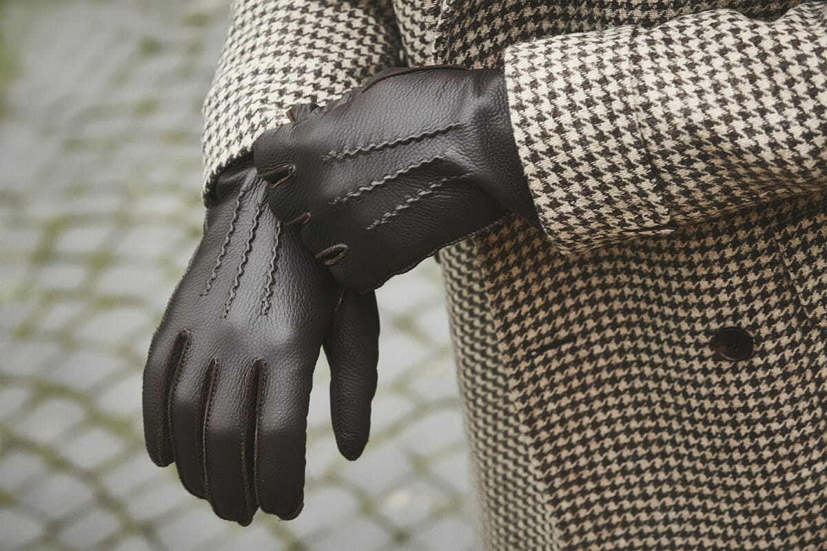 Wielu mężczyzn chodzi bez rękawiczek, bo wolą zmarznąć niż nosić rękawiczki grube i nieforemne. Właśnie dlatego przygotowaliśmy zgrabne, dobrze przylegające rękawiczki. Wyścielone zostały bardzo ciepłym kaszmirem, dzięki czemu wcale nie muszą być grube. Wykonano je ze skóry jelenia, w fasonie nawiązującym do przedwojnia. Taki dodatek to niezbędne uzupełnienie eleganckiego płaszcza.