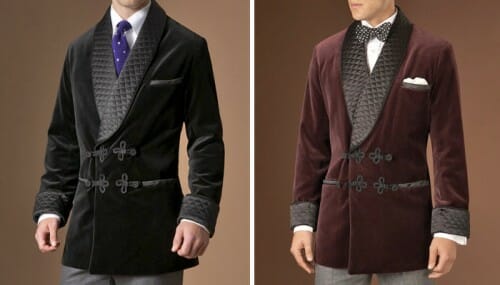 Bonżurkę zapinaną na kołki lub zwykłe guziki, w kolorze czarnym/granatowym można nosić, jako alternatywę do smokingu, na mniej formalne uroczystości. Wydaję mi się, że idealnie pasuje na święta spędzane razem z rodziną (Wigilia, Boże Narodzenie, Wielkanoc) i jest lepszym rozwiązaniem niż garnitur, kiedy klasyczny smoking może wydać się zbyt oficjalny. Na premierze Skyfall w Royal Albert Hall w Londynie smoking jacket założył nowy Q czyli Ben Whishaw. Popularność marynarek domowych z aksamitu wzrasta i pojawiają się w ofertach takich firm jak: Topman, Burberry Prorsum, Tom Ford czy Etro.