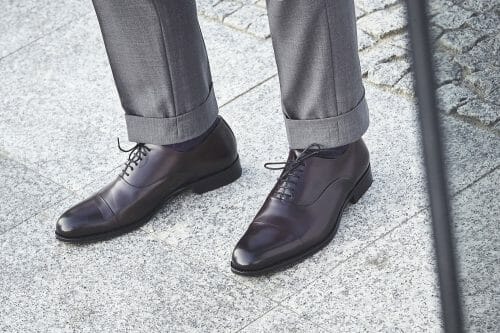 Drugim wariantem klasycznego obuwia są nieco swobodniejsze derby. Tak jak wspominałem, w tego rodzaju butach kwatery są naszyte na przyszwę. Dzięki temu łatwiej wsunąć nogę i zawiązać sznurowadła, mamy więc ukłon w stronę wygody.
