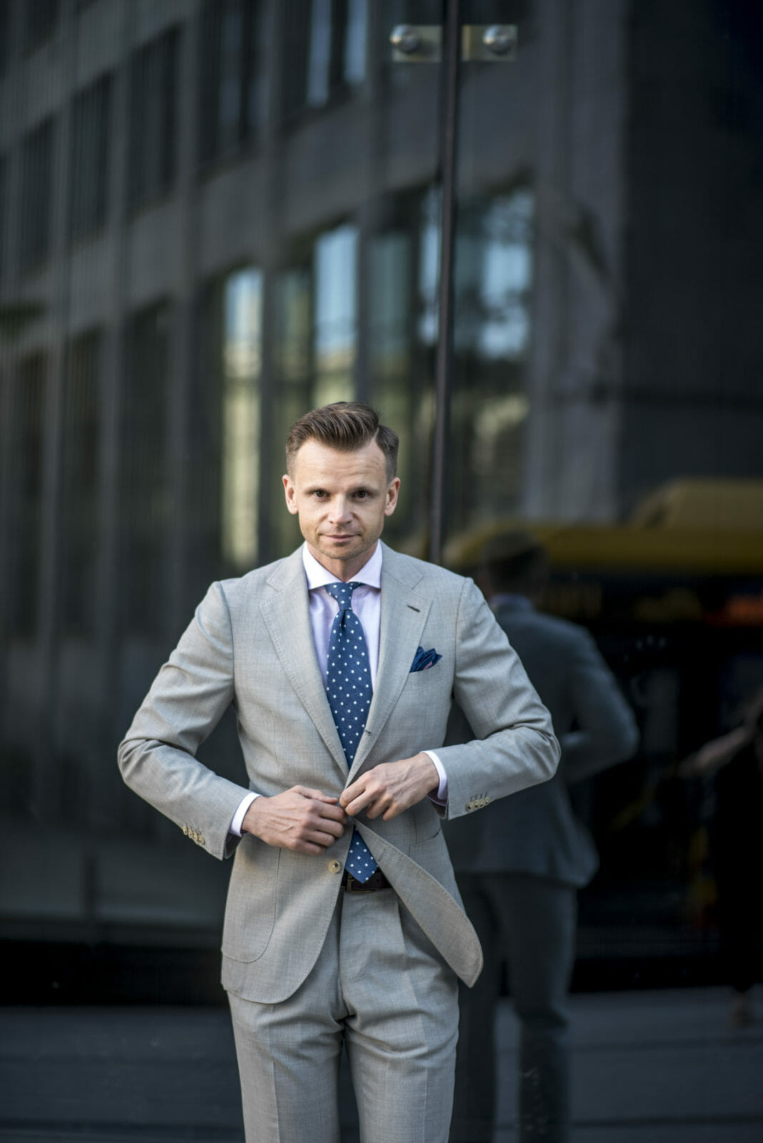 Garnitur w jasnym kolorze, na przykład niebieski albo szary, ma dzienny charakter. Jeśli w takim garniturze przyjdziemy na wieczorne wydarzenie, raczej nie zrobimy najlepszego wrażenia. Wyjątkiem może być upalne lato i swobodny charakter imprezy.