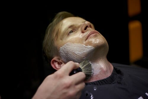 Golenie brzytwą zamówiłem w salonie fryzjerskim M.E.N., gdzie także się wcześniej obstrzygłem. Pierwszy etap golenia twarzy to położenie gorącego ręcznika otwierającego pory i zmiękczającego zarost. Potem nakłada się olejek aloesowy, żeby brzytwa gładko szła po skórze. Zdaniem Patryka Dytmara, fryzjera z M.E.N najlepszy do golenia jest 5-7-dniowy zarost. Brzytwa gładko idzie po skórze i nie ma efektu zaciągania przy słabym zaroście. Następnie fryzjer nakłada pędzlem krem do golenia i przystępuję do właściwego golenia. Na początku goli się z włosem i zaczyna od baczków, policzków i szyi. Najtrudniejsza jest bródka oraz okolice wąsów. Po pierwszym goleniu następuje często drugie i tutaj czasem goli się też pod włos. Fryzjer musi wyczuć skórę klienta. W M.E.N. na koniec nakłada się regenerujący balsam po goleniu.