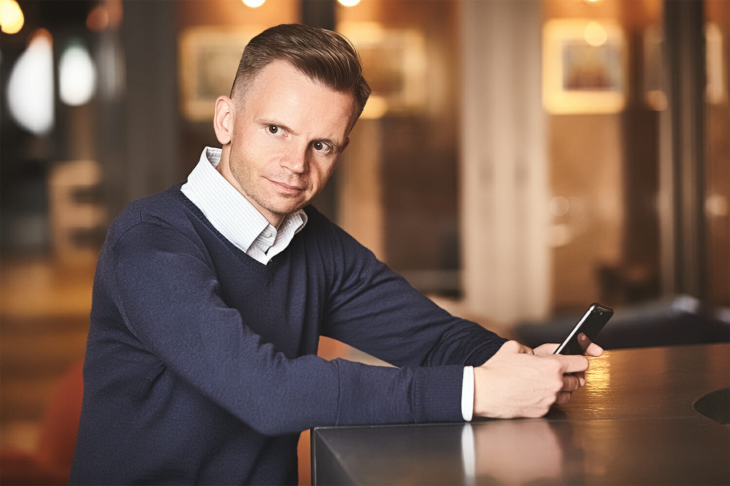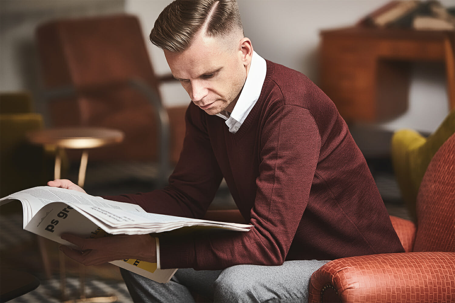 Swetry w serek mają niezbyt obcisły fason, dzięki czemu można je swobodnie nosić z krawatem. Golfy także nadają się pod marynarkę, choć oczywiście można je wykorzystać i w bardziej swobodnej stylizacji.