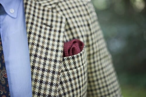 Najpopularniejsze wzory na sportowych krawatach to szkockie kraty, wzory tureckie (ang. paisley) lub motywy zwierzęce. Krawat nie jest zresztą obowiązkowy. Z powodzeniem może zastąpić go mucha lub fular. Kropkę nad i postawi poszetka, która powinna współgrać z kolorem krawata, ale nie być taka sama. W wielu pozycjach powtarza się jak mantrę, że krawat powinien być wykonany z innego materiału niż poszetka (przytacza się słynny casus jedwabnego krawata i lnianej poszetki). Jeśli trzymać się tej linii, to poszetka powinna być wykonana z błyszczącego jedwabiu, bo krawat jest matowy. W przypadku tweedów ta zasada się nie musi sprawdzać.