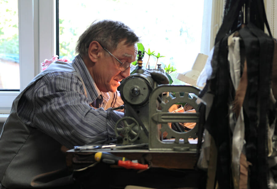AN: Tak bardzo. Mam wszystkie choroby zawodowe krawców – miałem poważne problemy ortopedyczne. Mam chory kręgosłup, łokieć tenisisty, hemoroidy. To są choroby krawców. Zaraz panu pokażę żelazko, od którego mam zwyrodnienie barku. 10 kg to żelazko waży. Tak więc jak prasowałem gruby materiał, płaszcz, to się mocno narobiłem. Teraz mam podobne żelazko, ale lżejsze – 5 kg. A jak kiedyś skóry szyłem, to sam je dźwigałem do kuśnierza.