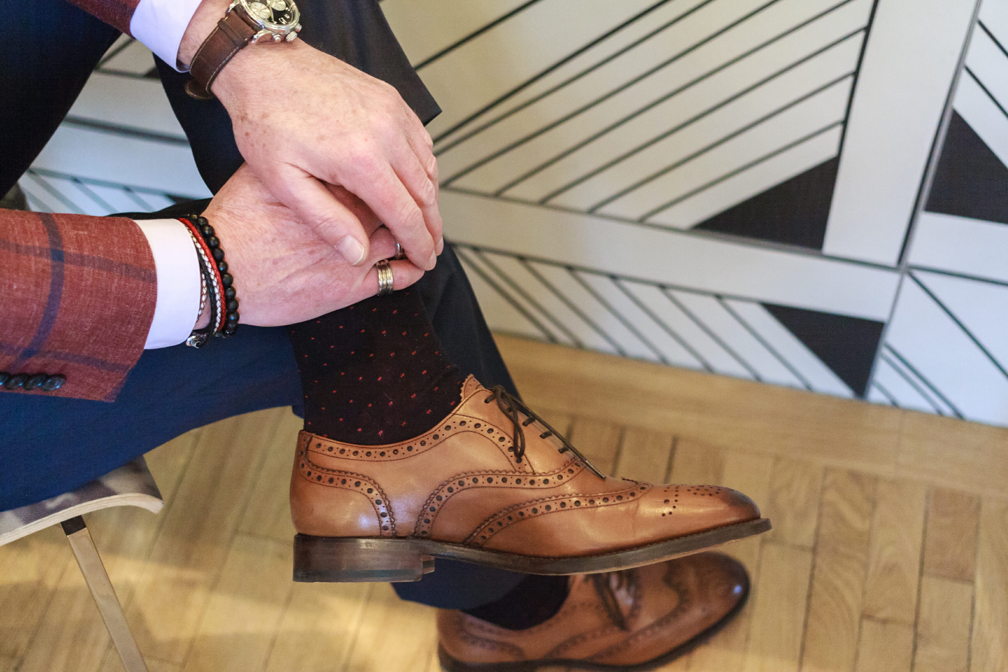Znaczenie ma też zasobność garderoby – jedynie spora liczba stylowych koszul, obuwia i dodatków pozwala prowadzić blog podobny do Stylemana. Może nie ma tu bogactwa zatrważającego, ale takiej szafy nie buduje się w miesiąc. A mokasyny z szyszkami, czerwone skarpety i takaż poszetka potrafią dodać sporo uroku z pozoru zwyczajnemu zestawieniu.