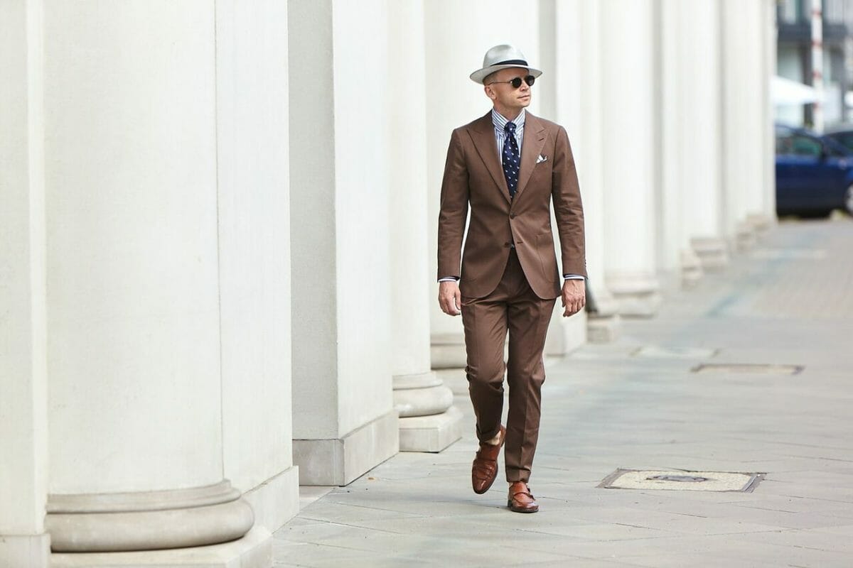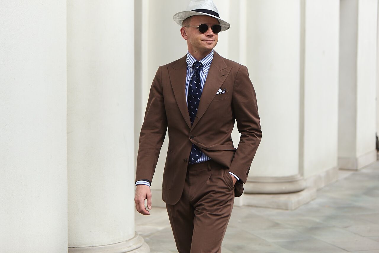 Co włożyć, kiedy granatowy garnitur byłby zbyt formalnym wyborem? Wielu decyduje się na sweter i chinosy. A co powiecie na brązowy garnitur?