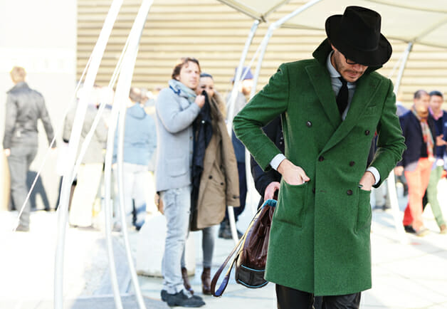 Fedora i zielony płaszcz