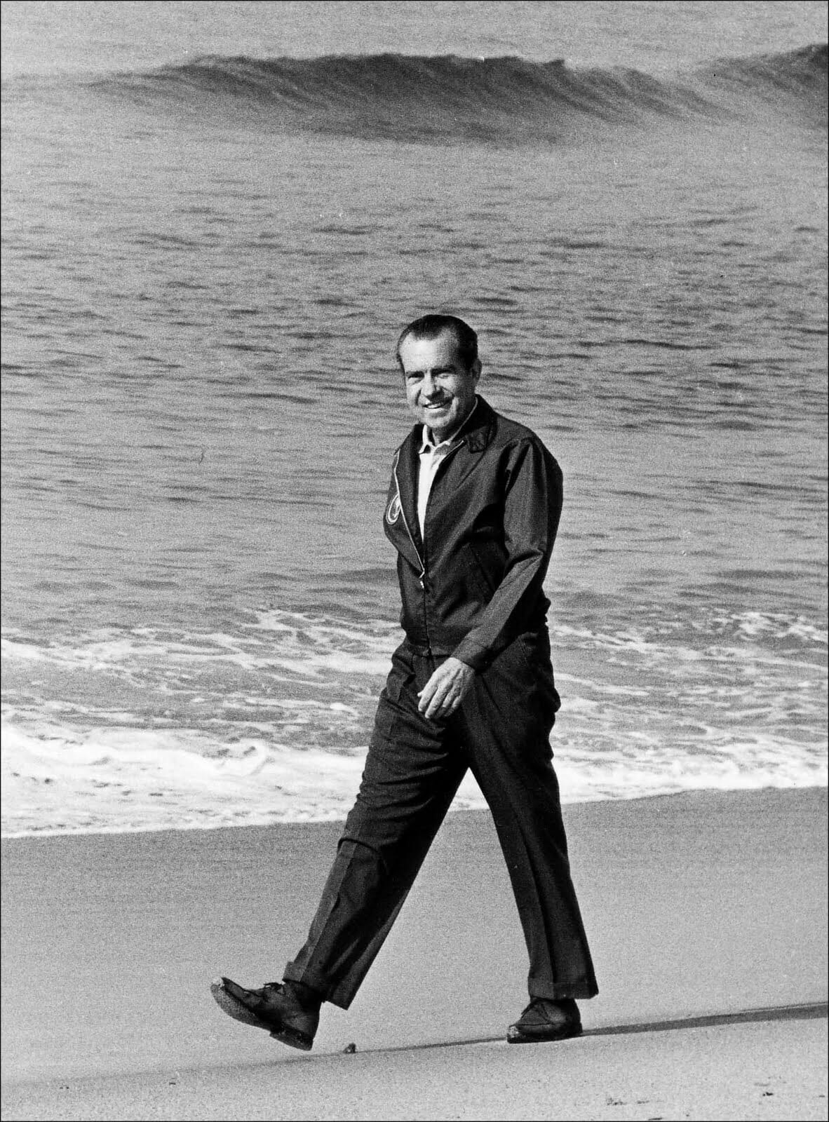 Z jednej strony można pójść na plażę w ciemnym garniturze, ale warto przypomnieć słynne zdjęcie Richarda Nixona w czarnych butach na plaży. Jego bardzo formalny ubiór zupełnie nie pasuje do otoczenia, ale jeśli miał taką fantazję, to w zasadzie, czemu nie. Należy to docenić, a nie potępiać w czambuł. Nixon w swoim ubiorze wybrał ekstremalną wersję elegancji: formalizm i pozostał jej konsekwentnie wierny.