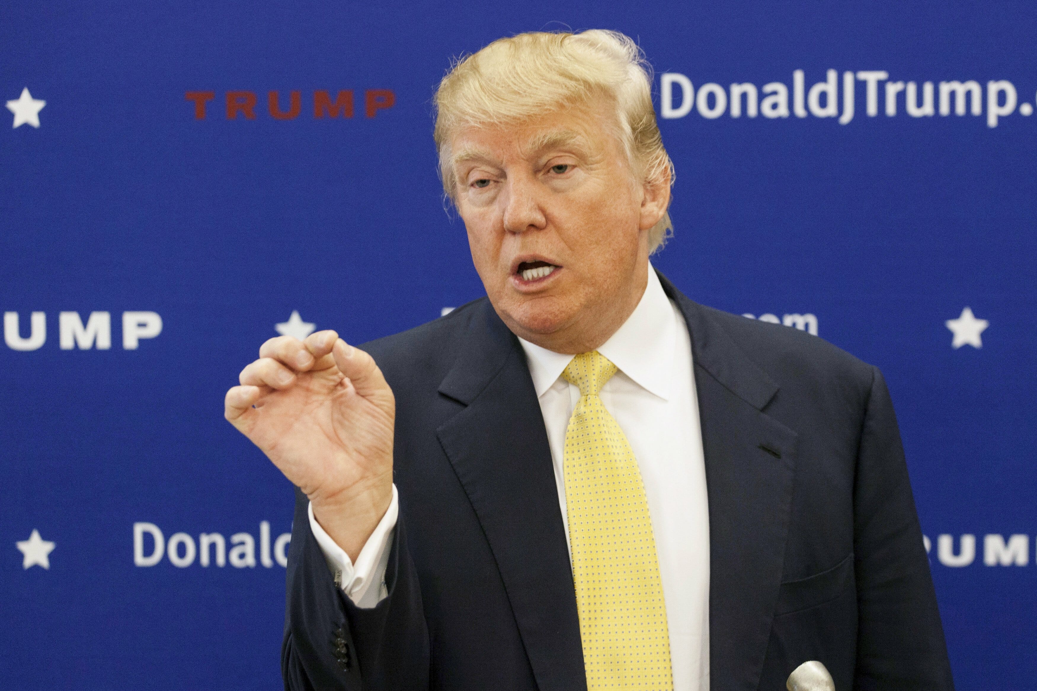U.S. Republican presidential candidate Trump speaks while campaigning for the 2016 Republican presidential nomination in Winterset