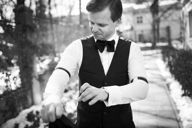 Jaki powinien być garnitur ślubny? Należy założyć muchę czy krawat? Kwiatek w klapie czy w kieszonce? Tu znajdziesz odpowiedzi na najważniejsze pytania, jakie sobie zadajemy, szykując garnitur na wesele.