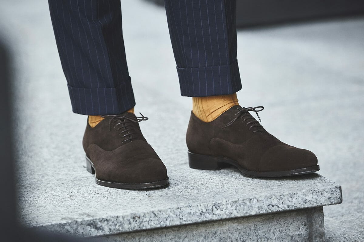 No więc co to są oksfordy? Na wysokości sznurówek but jest wykonany w sposób minimalistyczny, co nadaje mu bardzo elegancki kształt. Przekładając to na fachową terminologię szewską, można powiedzieć, że oksfordy charakteryzują się kwaterami doszytymi do przyszwy – w odróżnieniu od derbów, gdzie kwatery są naszyte na przyszwę. Brzmi to tajemniczo, ale sprawa jest bardzo prosta.