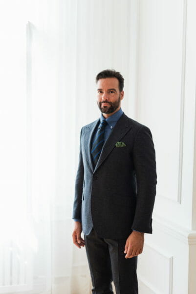Dopasowany krój, miękka konstrukcja, delikatny deseń – taki może być garnitur z donegalu, tkaniny typowej dla irlandzkiego stylu. W tym wydaniu okazuje się niezwykle uniwersalny. Tej zimy na pewno będę go zakładać częściej niż standardowy garnitur z gładkiej wełny.