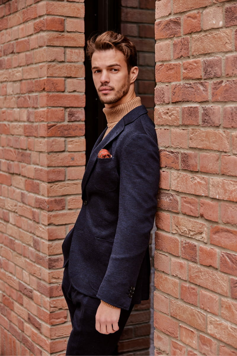 Tak, jeśli cenisz styl niezobowiązujący, ale dopracowany. Garnitur Jersey nie jest oczywiście przeznaczony na formalne okazje. Głęboki odcień granatu i klasyczny krój sprawiają jednak, że dobrze się prezentuje z koszulą button down, wełnianym krawatem i brogsami albo sztybletami.