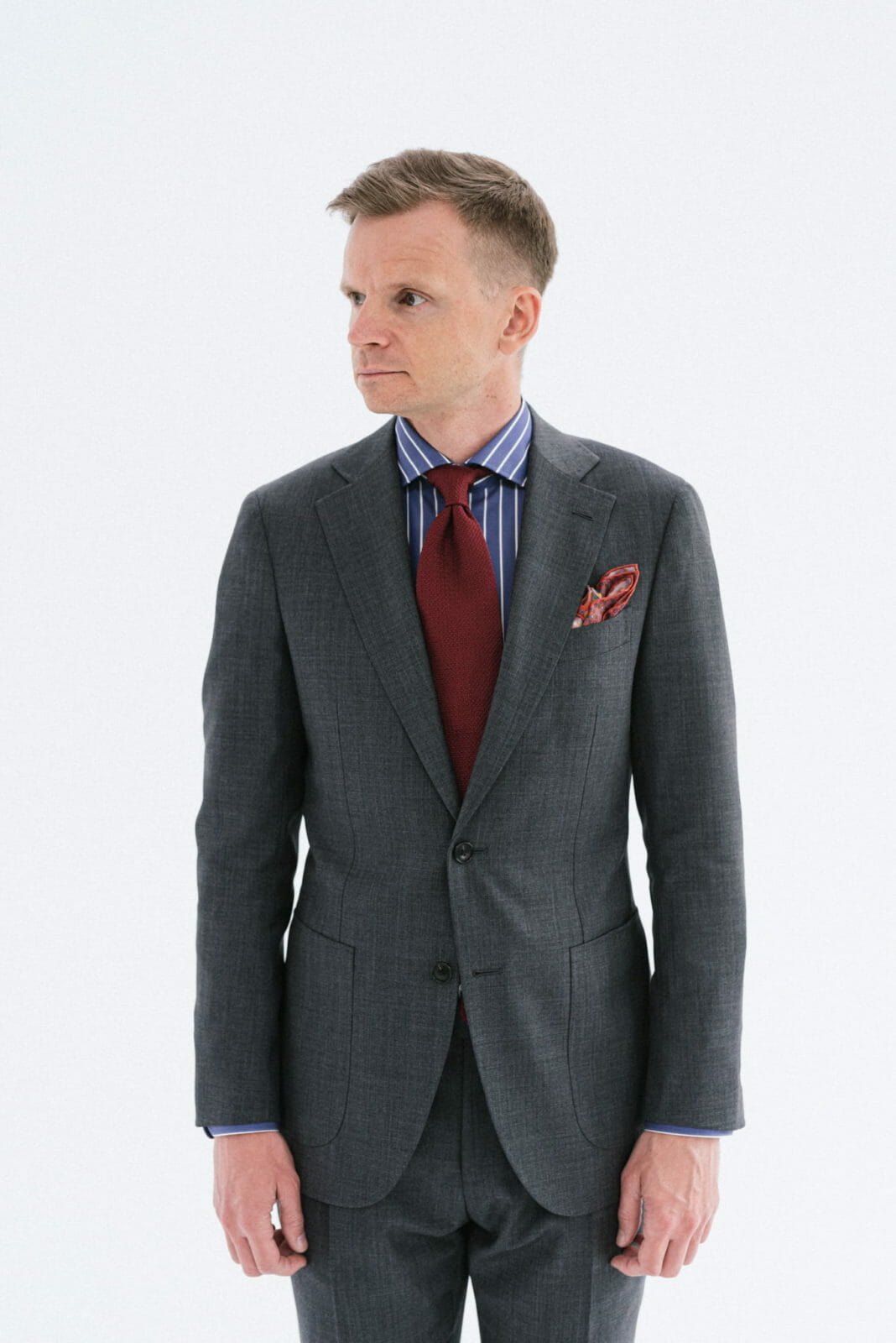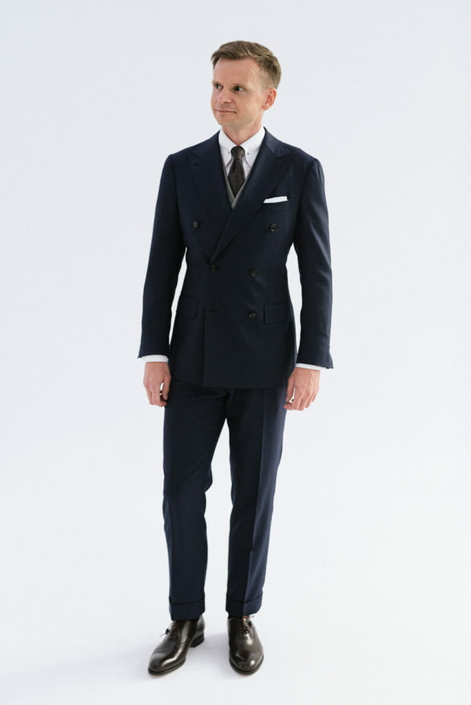 Dwurzędowy garnitur z mocnym wcięciem w talii to klasyk brytyjskiego krawiectwa. My połączyliśmy ten fason z bardzo lekką konstrukcją i włoskimi detalami. Efektem jest doskonały balans, dlatego model Gianni powraca do naszej oferty. Oczywiście w odświeżonej wersji.