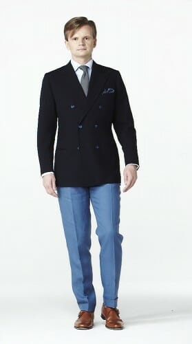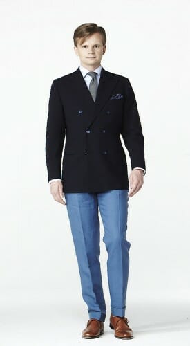 Poprosiłem sprzedawcę o wskazanie, gdzie są marynarki w zbliżonym rozmiarze do angielskiego 40R. Udałem się we wskazane miejsce i na drugim wieszaku trafiłem na granatową marynarkę dwurzędową. Szybko sprawdziłem, czy w klapach czuć ręczne pikowanie i włosiankę. Okazało się, że tak. Serce zabiło mi mocniej. Sprawdziłem metkę, Sartoria Santagada z Varese, a więc miarówka z północnych Włoch. Przymierzyłem i zamarłem z wrażenia. Marynarka pasowała niemal idealnie, przede wszystkim w ramionach. Trzeba było ją jedynie wytaliować.