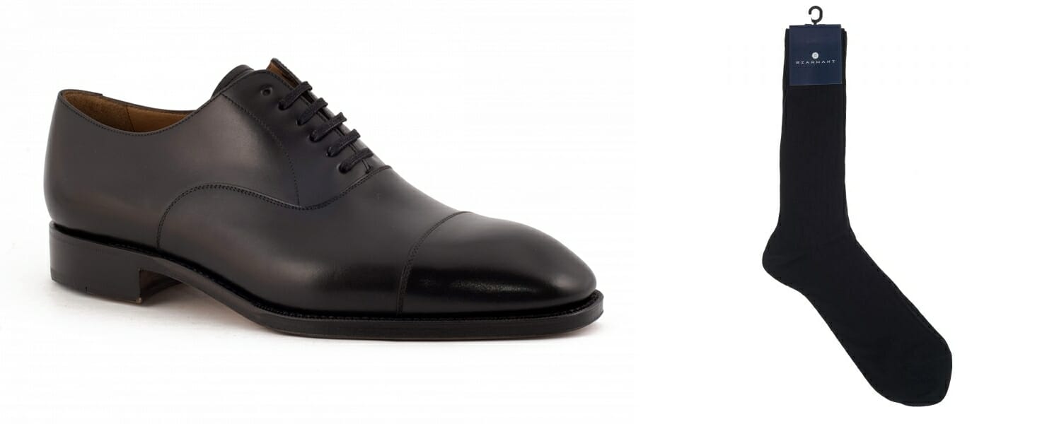 Czarne oksfordy i czarne skarpetki
