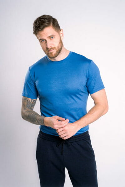T-shirt-welniany,-niebieski