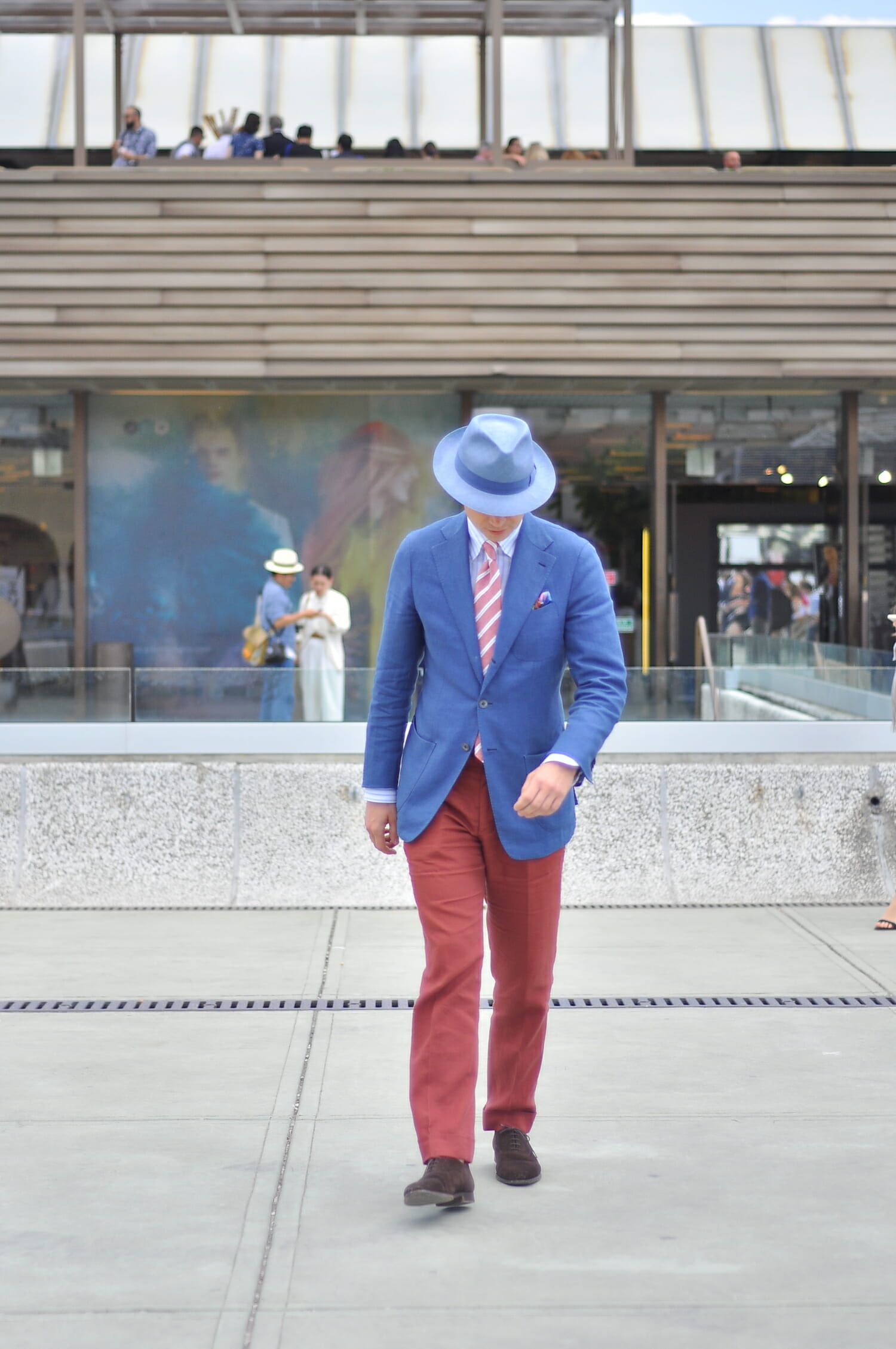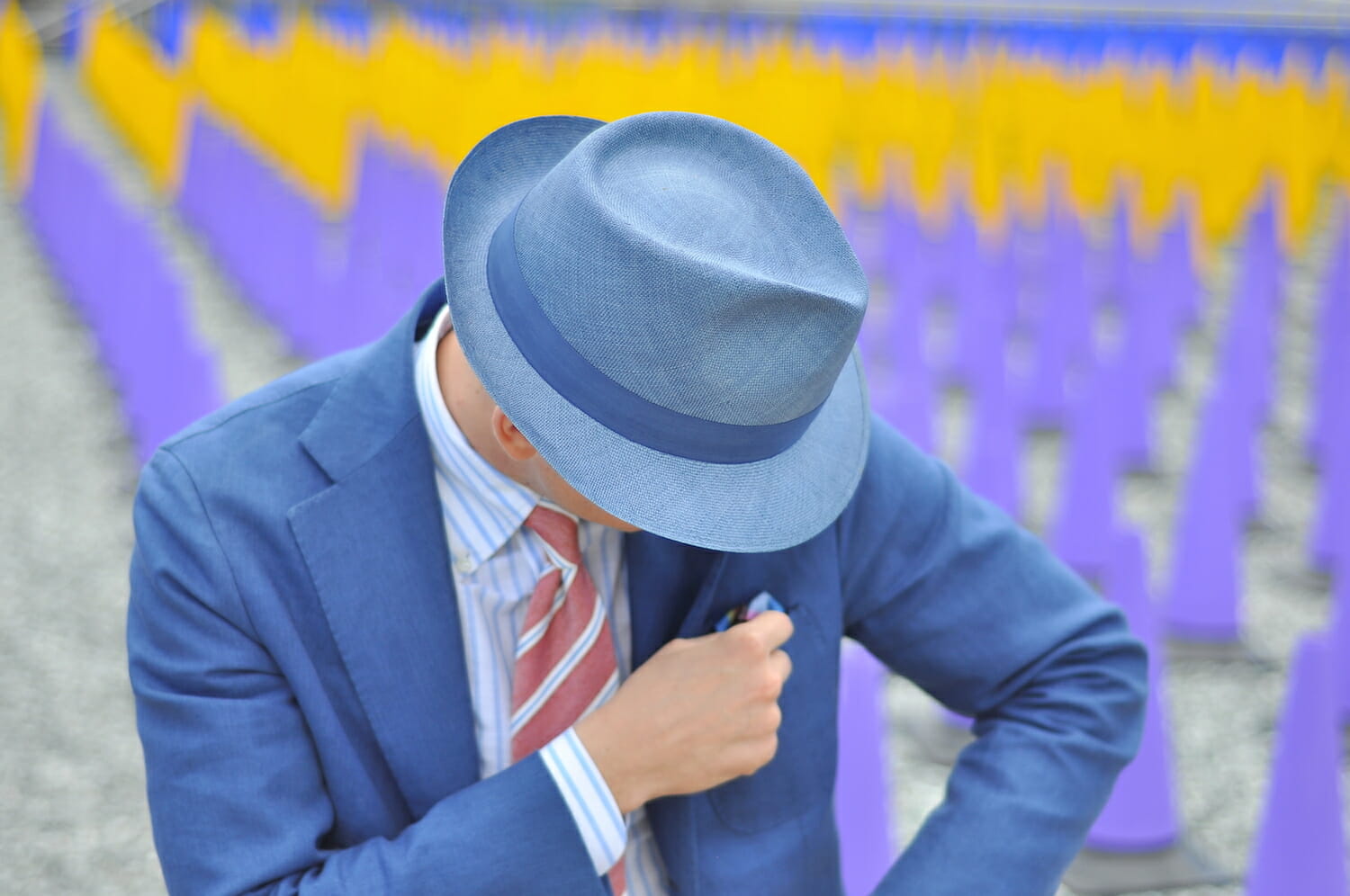 Jest to wspaniała alternatywa dla klasycznej panamy pozyskiwanej z liści palmy ekwadorskiej. Na temat przewiewności i lekkości kapeluszy rozmawiałem w ostatnich tygodniach z Luigim Tesim z niewielkiej manufaktury rodzinnej, która wykonuje dla mnie kapelusze. Jak powiedział mi ten znawca tematu, obok palmy ekwadorskiej jest dostępny równie dobry, ale lżejszy materiał znany jako sizal. Nigdy wcześniej o nim nie słyszałem. Materiał okazał się strzałem w dziesiątkę. Kapelusz z sizalu jest tak lekki, że w ogóle nie czuję go na głowie. Charakteryzuje go także lekki połysk. Klasyczna panama jest zdecydowanie matowa.
