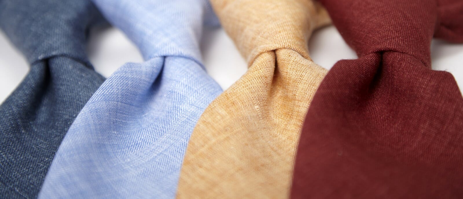 W tym sezonie do sklepu Szarmant zamówiłem serię krawatów z lnu. Wykonano je w cenionej manufakturze włoskiej z Lombardii. Są to krawaty typu 3-fold (trzykrotnie złożone), bez podszewki. Wyróżnia je niepowtarzalny rulonik u dołu, będący znakiem kunsztu rzemieślnika.