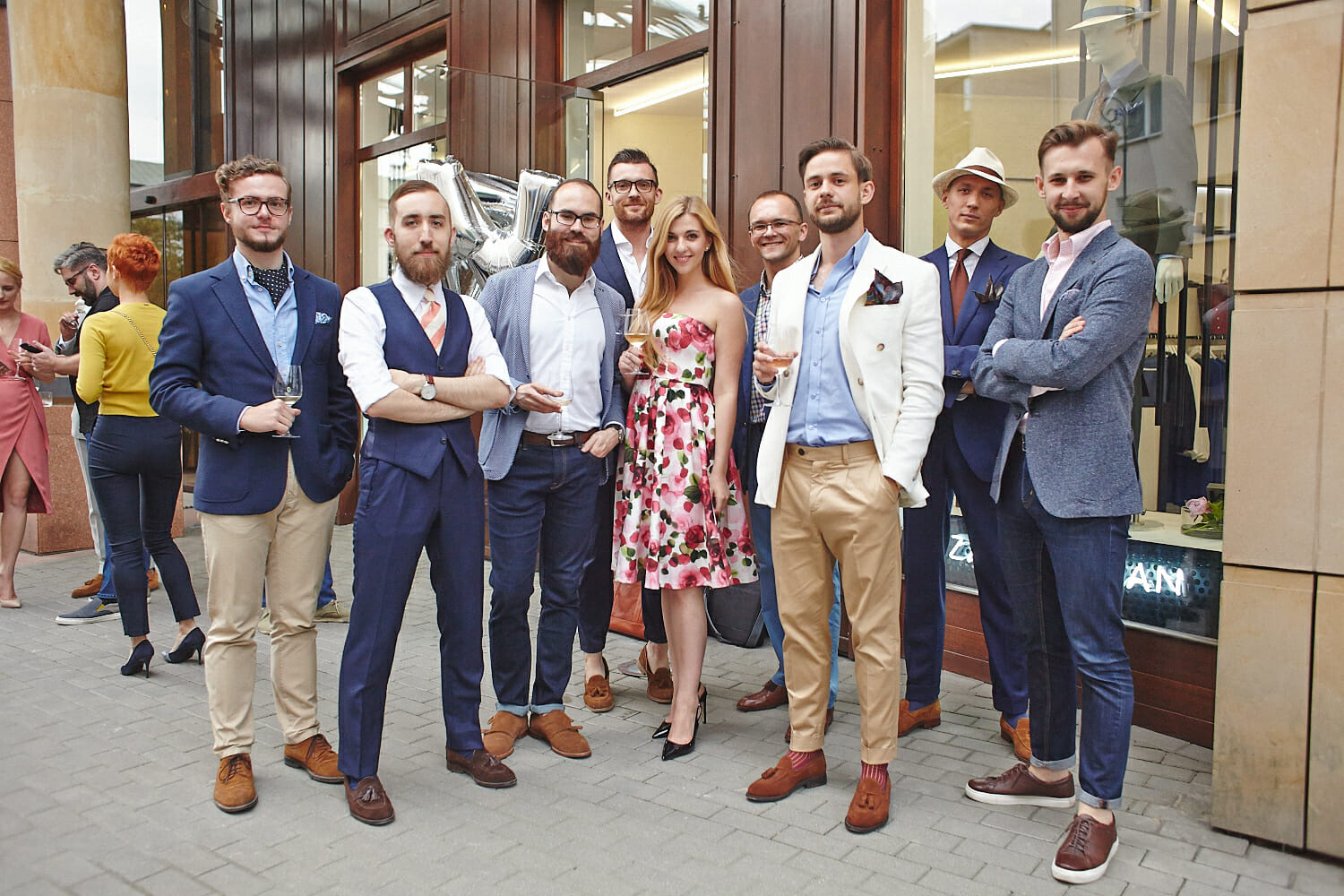 Na otwarcie postanowiłem założyć jasnoszary garnitur z Fresco. Był idealnie skorelowany z porą roku, i wystarczająco formalny jak na ubiór gospodarza. Zgodnie z przypuszczeniami granatowych garniturów było sporo, ale szarych zdecydowanie mniej. A szkoda, ponieważ jasnoszary to idealny kolor na garnitur miejski wiosną i latem. Może za rok, na pierwszych urodzinach butiku, te proporcje się zmienią?