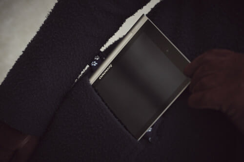Table Lenovo Yoga i płaszcz z wełny casentino