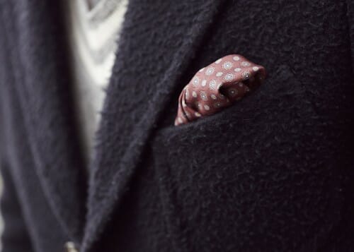 Coat from casentino wool by Zaremba and silk hanky by Brioni
