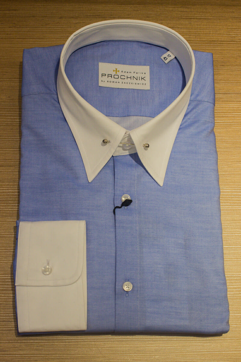 Winchester shirt (pin collar) with blue body and white collar and white cuffs