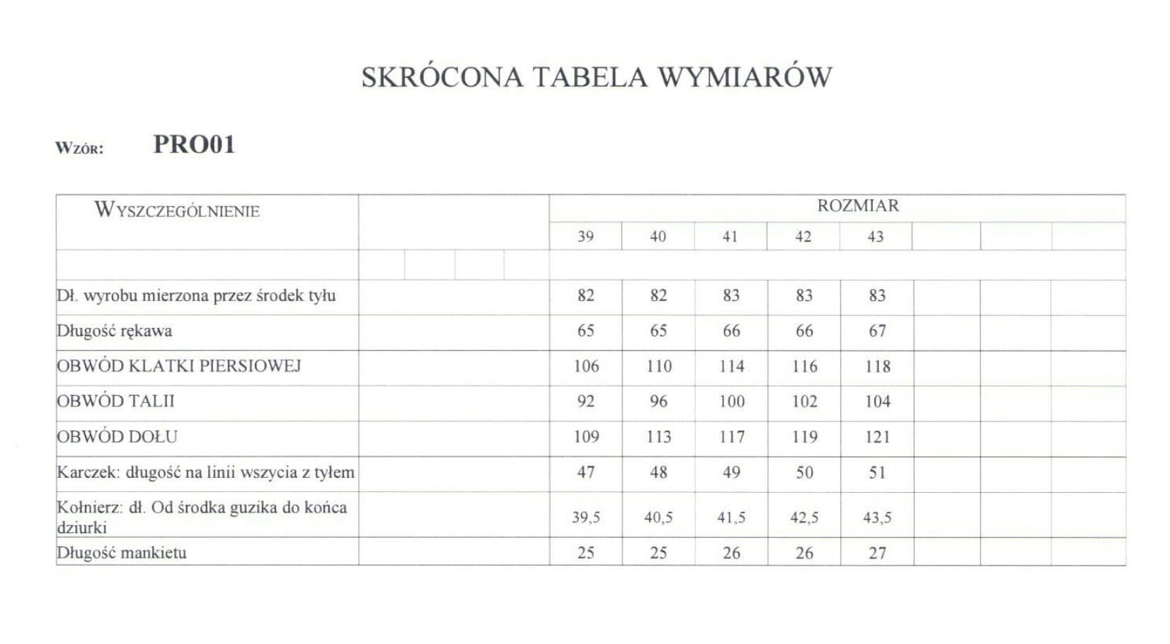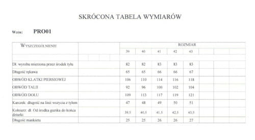 rozmiarówka koszul