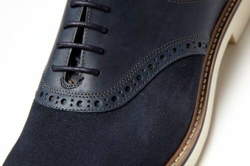 W końcu trafiłem na saddle shoes w jednym z polskich sklepów internetowych (Schaffa Shoes). Pojechałem przymierzyć do sklepu stacjonarnego na warszawskim Ursynowie, był akurat ostatni numer w moim rozmiarze w bardzo rozsądnej cenie. Saddle shoes, dzięki zamkniętej przyszwie są odrobinę bardziej formalne niż mokasyny i obuwie żeglarskie. Są wykonane z zamszu, ale ich część środkowa przy przyszwie jest ze skóry licowej.