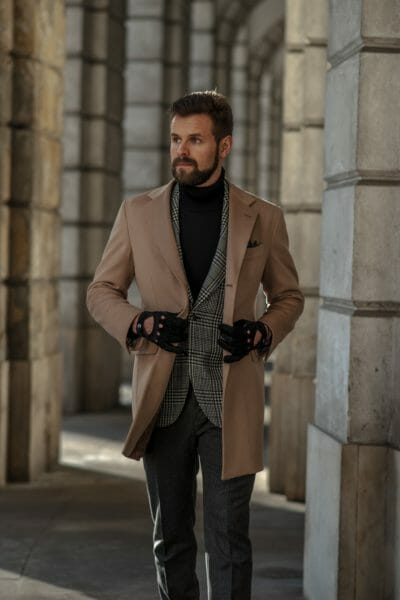 jasna dyplomatka i brązowe rękawiczki