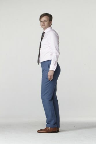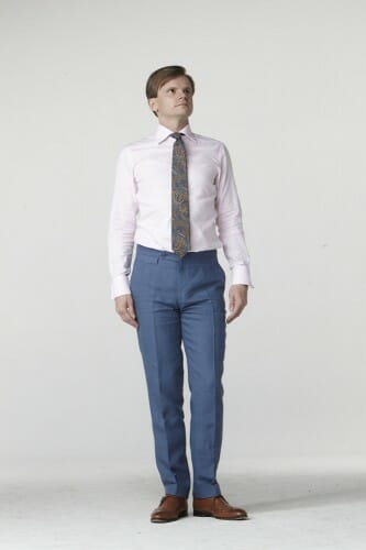 W samych spodniach z lnu czuję się świetnie. Nie mają tak wysoko położonego stanu jak dotychczas, i są bez zakładek. Po wielu eksperymentach uznałem, że dla osoby o większym obwodzie bioder (niestety) niż klatki najlepsze są spodnie bez zakładek. Spodnie z zakładkami tworzą niepożądany efekt gruszki i powiększają optycznie biodra. Ponadto osoby szczupłe, bez brzuszka powinny raczej nosić spodnie z niższym stanem. Odmładza to figurę i jest bardziej seksowne. Czasem warto słuchać się koleżanek, a nie tylko patrzeć na klasyczne ilustracje z legendarnego Apparel Arts.