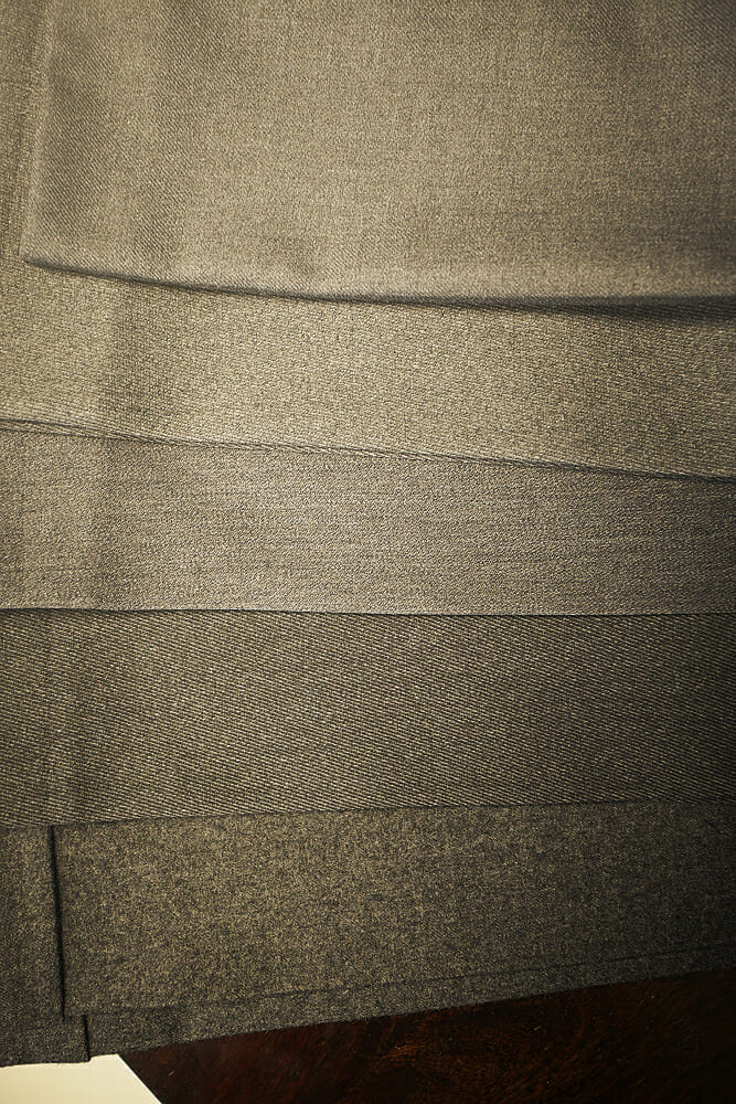 Od góry: wełna czesankowa, gabardyna, wenecjan, gabardyna oraz flanela