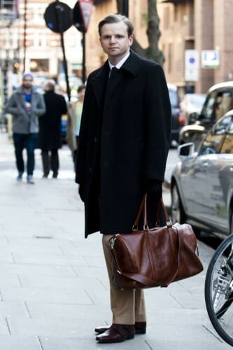 Najwiekszym zainteresowaniem cieszyla sie skorzana torba z projektu Stowarzyszenia But w Butonierce. Na drugim miejscu byla dwurzedowa marynarka uszyta w latach 70 przez krawca z Varese z polnocnych Wloch. Dzieki niej bylem chyba najbardziej klasycznie ubrany z grona odwiedzajacych targi, nie liczac wtorkowego wydarzenia w Spencer House.