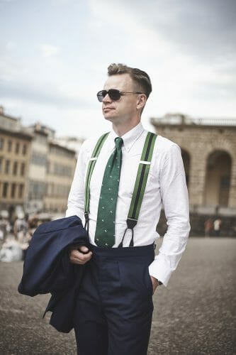 Odpowiednio dobrane szelki do garnituru wyznaczają wyższy stopień elegancji. Dobrze skrojona marynarka i klasyczne buty to punkt pierwszy, ładnie zawiązany krawat i poszetka to punkt drugi. Ale na tym przecież nie koniec. Wygląda na to, że dziś sartorialistę poznaje się nie po poszetce, która znacznie zyskała na popularności, a po szelkach. Ten dodatek jest w moim przekonaniu dużo lepszym wyborem od paska, przynajmniej w bardziej eleganckich zestawach. Dlaczego? Wymienię trzy powody.