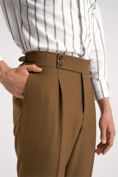 Spodnie-welniane-Fresco,-tabakowe