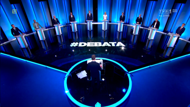 Podczas debaty prezydenckiej w TVP Bronisław Komorowski wystąpił w bardzo ciemnym garniturze zapinanym na dwa guziki. Kolor garnituru wrażenie sprawiał wręcz grobowe. Jego rywal zdecydował się na kolor ciemnoniebieski, który ma ujmować lat kandydatowi na prezydenta. Jego odcień jest zdecydowanie jaśniejszy od odcienia garnituru prezydenta Komorowskiego (Autor: Roman Zaczkiewicz)