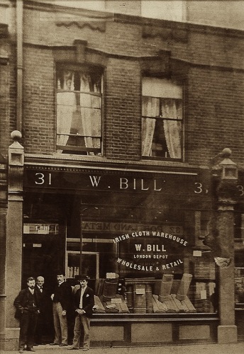 William Bill założył swój interes w 1846 roku w zachodniej Walii. Pierwsza siedziba znajdowała się na Chester Street w miasteczku Mold. Sprzedawano tam walijską flanelę, koce, a później tweed. W 1892 roku sklep został przeniesiony do Londynu – prowadził go William Thomas Bill, należący do kolejnego już pokolenia. Otwarto wówczas dwa punkty: jeden z dzianinami, a drugi z tkaninami. Z czasem zostały połączone – nowa siedziba firmy mieściła się na Great Portland Street. Na przełomie XIX i XX wieku grube tkaniny szkockie stały się w Londynie niezwykle popularne. Firma Billów doskonale się odnalazła w nowej sytuacji na rynku i zaczęła dostarczać krawcom tweedy. Klientom detalicznym sprzedawano ubrania z szetlandów i kaszmirów.