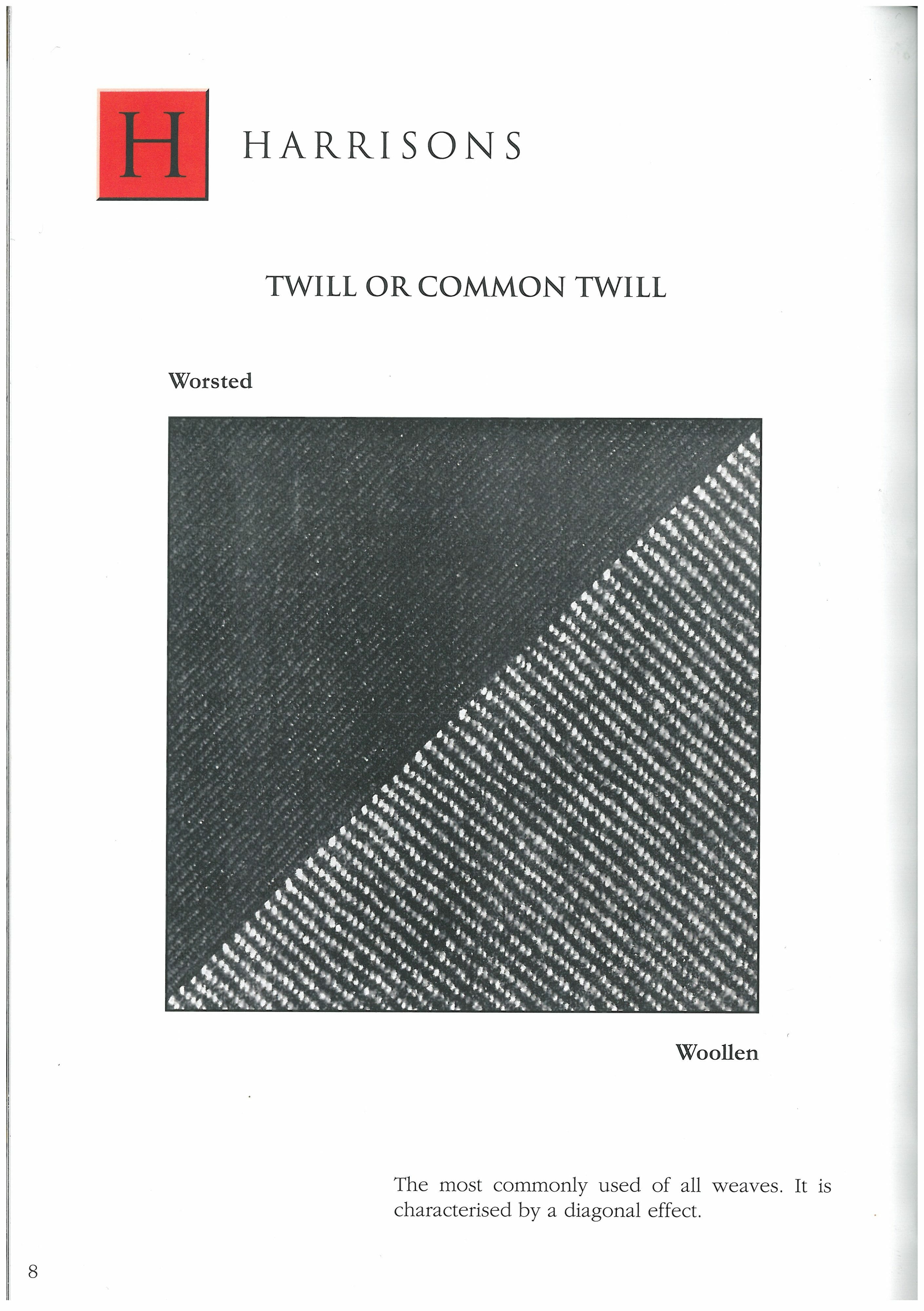 Na krosnach mogą być, więc siłą rzeczy są, wykorzystywane dwa różne rodzaje przędzy: włochate i uczesane. W rezultacie materiały mogą mieć taki sam splot, ale tkaniny będą bardzo różne. Decyduje o tym zastosowana przędza. Skany z książki o wzorach i splotach wydanej na 150-lecie firmy Harrisons of Edinburgh to dobrze pokazują. Poniżej przykład tkaniny w deseniu dwa na dwa w wersji czesankowej i włochatej.