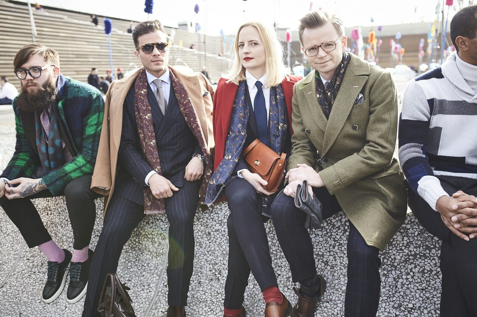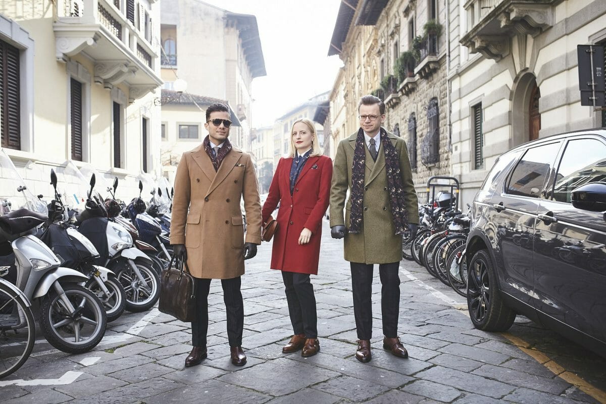 Florenckie targi mody Pitti Uomo to najważniejszy zjazd dandysów na świecie. Kiedy w 2012 roku pojechałem tam po raz pierwszy, zapierało mi dech. Na Pitti być ubranym dobrze to za mało, bo wokół mnóstwo jest ludzi imponujących odwagą, pomysłowością, interesującym i oryginalnym stylem. Przechodziłem przez targi nieco przygarbiony i zakłopotany. Ale oswoiłem się i dopracowałem swój styl. W tym roku z dumą prezentowałem swoje projekty i swoją markę. Czułem się swobodnie i spędziłem we Florencji wspaniały czas, bo towarzyszyli mi przyjaciele – Michał Gronowski, który został w całości został obszyty przez naszą markę, i Monika Kamińska, która skorzystała z dodatków z sklepu internetowego Szarmant. Jak widać, klasyczne akcesoria komponują się także z modą damską.